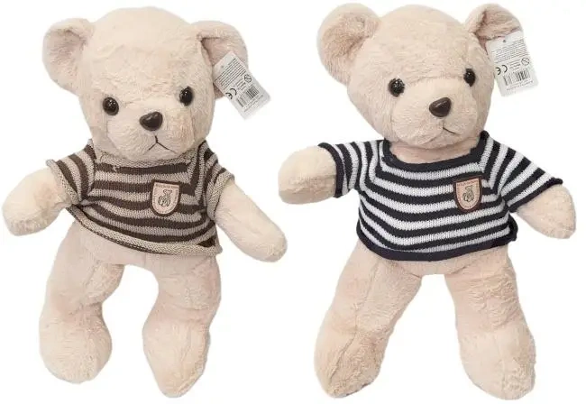 Poznaj naszego uroczego pluszowego misia, który z pewnością skradnie serce każdemu! Ten beżowy miś, ubrany w stylowy sweterek w biało-granatowe paski, prezentuje się niezwykle urokliwie. Na jego sweterku znajduje się również mała, ozdobna naszywka z herbem, dodająca mu elegancji. Miś został wykonany z wysokiej jakości, niezwykle miękkiego i przyjemnego w dotyku pluszu, co sprawia, że jest idealny do przytulania i tulenia. Jego klasyczny wygląd i dbałość o detale sprawiają, że będzie wspaniałym prezentem dla dzieci w każdym wieku, jak i dla dorosłych kolekcjonerów pluszaków. Doskonały do snu, zabawy i jako element dekoracyjny w pokoju.