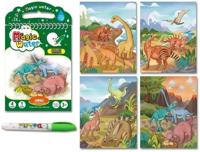 Odkryj fascynujący świat dinozaurów w zupełnie nowy sposób dzięki zestawowi "Magiczna Woda Dino"! Ten wyjątkowy produkt to idealne rozwiązanie dla rodziców szukających kreatywnych i bezbałaganowych zabawek dla swoich pociech. W zestawie znajdziesz 4 starannie zaprojektowane karty przedstawiające różnorodne dinozaury w ich naturalnym środowisku. Dołączony specjalny pisak wystarczy napełnić wodą, aby magicznie uwolnić żywe kolory na kartach, sprawiając, że obrazy ożywają na oczach dziecka. Po wyschnięciu, kolory znikają, a karty są gotowe do ponownego użycia, co gwarantuje długie godziny ekscytującej zabawy. Zestaw "Magiczna Woda Dino" jest przeznaczony dla dzieci od 3 roku życia i doskonale wspiera rozwój małej motoryki, koordynacji ręka-oko oraz kreatywności. To fantastyczna alternatywa dla tradycyjnych kolorowanek, która eliminuje problem plam i zabrudzeń. Idealny do zabawy w domu, w podróży czy na wakacjach - wszędzie tam, gdzie chcesz zapewnić dziecku wartościową i wciągającą rozrywkę. Podaruj swojemu maluchowi niezapomnianą przygodę z dinozaurami, która rozwija i bawi jednocześnie!