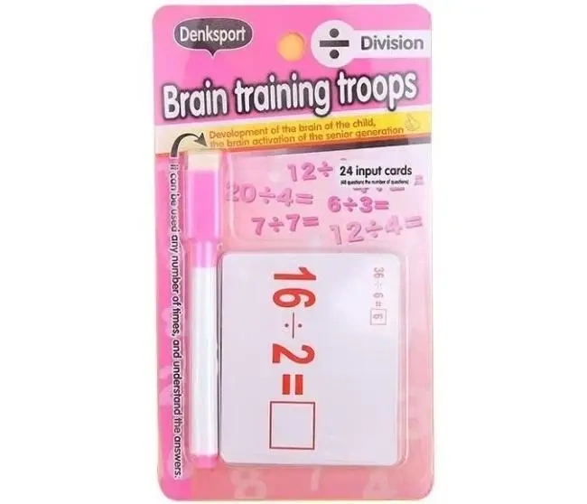 Odkryj innowacyjny zestaw "Denksport Division - Brain Training Troops", stworzony z myślą o efektywnej nauce dzielenia i stymulacji umysłowej. Ten praktyczny pakiet, idealny zarówno dla rozwijających się umysłów dzieci, jak i dla seniorów pragnących aktywować swój mózg, oferuje 24 dwustronne karty z różnorodnymi zadaniami dzielenia. Dołączony mazak umożliwia łatwe zapisywanie i ścieranie odpowiedzi, co sprawia, że zestaw jest wielokrotnego użytku i pozwala na nieograniczone powtórzenia. Dzięki temu, użytkownicy mogą ćwiczyć w swoim własnym tempie, utrwalając wiedzę i budując pewność siebie w rozwiązywaniu działań matematycznych. "Denksport Division" to doskonały sposób na wspieranie rozwoju poznawczego, poprawę koncentracji i ułatwienie przyswajania podstawowych zasad dzielenia w przyjemny i interaktywny sposób.