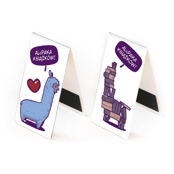 ALePAKI to stworzenia stadne, lubiące zacisze domowe, ale od czasu do czasu nie stroniące od gwarnej kawiarni. Doceń je i zaproś do domu, a odwdzięczą się, dostarczając niezapomnianych wrażeń. Opowiedzą piękne historie, odkryją przed Tobą nieznane lądy i wzruszą, jeśli dopadnie Cię nostalgiczny nastrój. Zaokrąglone rogi, papier kreda 350 g, folia zabezpieczająca błysk, folia magnetyczna na kawałku zakładki