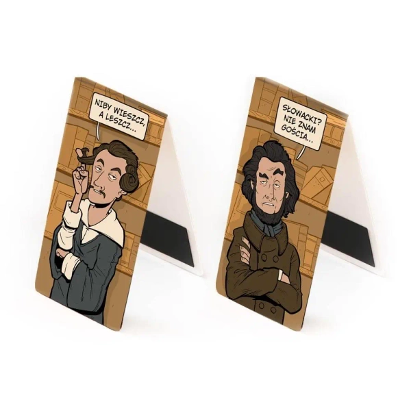 Słowacki czy Mickiewicz? Spór pomiędzy narodowymi wieszczami przeszedł do legendy, a Ty wcale nie musisz wybierać strony tego konfliktu. Nasza zakładka Mickiewicz vs Słowacki jest bowiem dwustronna. Możesz zakładać ,,Dziady" wizerunkiem Juliusza, na złość Adasiowi, lub odwrotnie - umieszczać Adama w ,,Śnie srebrnym Salomei". Dodamy również, że ta zakładka to idealny upominek dla każdego Molika Książkowego. Zaokrąglone rogi, papier kreda 350 g, folia zabezpieczająca błysk, folia magnetyczna na kawałku zakładki