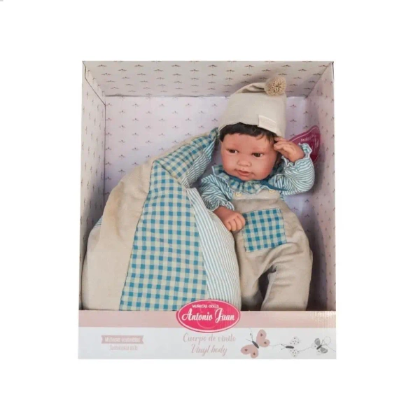 Dzieci uwielbiają wyjątkowe lale, które można kąpać i przebierać. 42 - centymetrowy, winylowy bobas Pipo circus to nowa wersja bestsellerowego modelu 50035. Bobas w uroczej czapeczce jest dostępny w zestawie z kolorową pufą siedziskiem dla lali. Brązowooki chłopiec posiada pozostałość pępowiny i zaznaczoną płeć. Zachwyca piękna, pogodna, realistycznie wyglądająca twarzyczka. Lalka hiszpańska renomowanej marki Antonio Juan wyróżnia się dopracowanymi detalami, takimi jak: długie rzęsy, ręcznie malowane brwi, usta i paznokcie, imitacja śliny w kąciku ust, czy też wyrzeźbione włoski i fałdki. Lalka winylowa Pipo 50427 w zestawie z luksusowymi ubrankami i akcesoriami Lalka hiszpańska Pipo 50427 ma ruchome rączki, nóżki i głowę, dzięki czemu można ułożyć ją w różnych pozycjach. Atrakcyjności zabawie dodaje stylowy, wysokiej jakości, ręcznie szyty outfit: bawełniana bluzeczka w paseczki, sztruksowe ogrodniczki na szelkach z długimi nogawkami, wiązana czapeczka z pluszowym pomponem. W zestawie jest także pasująca kolorystycznie miękka pufa, uszyta z łączonych materiałów siedzisko dla bobasa, idealne do zabawy i oryginalnego wyeksponowania zabawki w pokoju dziecięcym. Luksusowa lalka hiszpańska marki Antonio Juan dodaje szyku każdej kolekcji zabawek! Lalka hiszpańska Pipo 50427, w całości wykonana w Hiszpanii, przeznaczona jest dla dzieci od 3. roku życia. Spełniająca wszystkie normy bezpieczeństwa, winylowa lalka jest zapakowana w solidne, oryginalne, biało-różowe pudełko z wieczkiem. Z powodzeniem spełnia rolę opakowania prezentowego. Dziewczynka może wykorzystywać je jako łóżeczko dla bobasa.