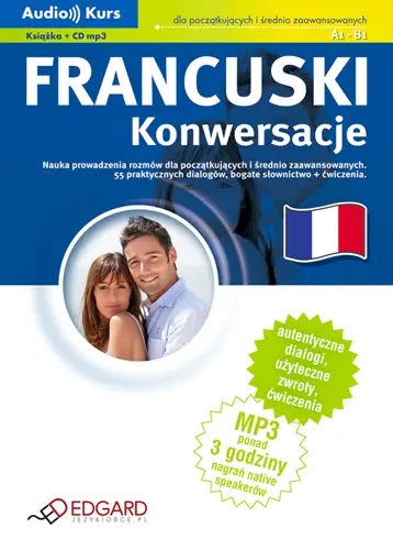 Francuski Konwersacje przeznaczone są dla osób początkujących oraz średnio zaawansowanych, które chcą zdobyć lub udoskonalić umiejętność prowadzenia swobodnych rozmów w języku francuskim. Kurs jest szczególnie polecany tym, którzy wybierają się w podróż do krajów francuskojęzycznych.Kurs to 55 dialogów, nauka przydatnych zdań, słów i zwrotów oraz zestawy ciekawych ćwiczeń. Tematy rozmów związane są z praktycznymi, życiowymi sytuacjami, takimi jak szukanie pracy, problemy z komunikacją miejską, podróże, wizyta u lekarza, zakupy, a także z życiem rodzinnym i towarzyskim.