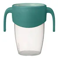 Obręcz pozwala dziecku wygodnie pić z każdej strony kubka – wystarczy przycisnąć ustami silikon, a napój zaczyna płynąć.