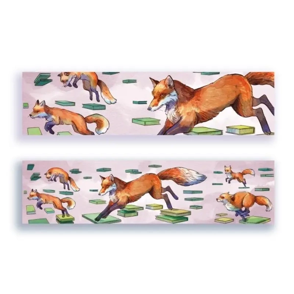 Podążaj śladami liska, który z gracją przeskakuje między książkami. Zakładka pełna ruchu i tajemnicy, idealna dla tych, którzy uwielbiają literackie przygody! Dodaj odrobinę magii do każdej lektury! Ta zakładka nie tylko wskaże, gdzie skończyłeś czytać, ale również stanie się Twoim osobistym strażnikiem literackich podróży. Karton ozdobny perłowy 300g, sztywny, metaliczno-srebrny połysk Wymiary: 50x200mm