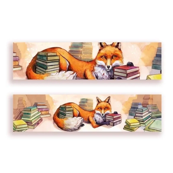 Lis na tej zakładce to nie tylko zwykły leśny mieszkaniec - to symbol sprytu, ciekawości i mądrości. Zawsze czujny, jakby strzegł Twojej ulubionej strony, gotowy towarzyszyć Ci w kolejnej fascynującej podróży po kartach książki. Jego spojrzenie, pełne tajemnicy, zachęca do odkrywania nowych historii, a może nawet kryje w sobie kilka własnych opowieści, czekających na odkrycie. Dodaj odrobinę magii do każdej lektury! Ta zakładka nie tylko wskaże, gdzie skończyłeś czytać, ale również stanie się Twoim osobistym strażnikiem literackich podróży. Karton ozdobny perłowy 300g, sztywny, metaliczno-srebrny połysk Wymiary: 50x200mm