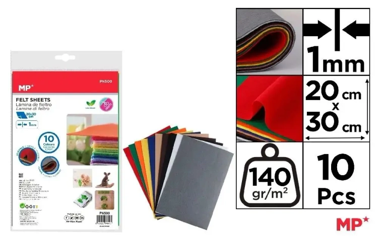 Filc dekoracyjny 20x30cm 140g 10 kolorów - MP Main Paper