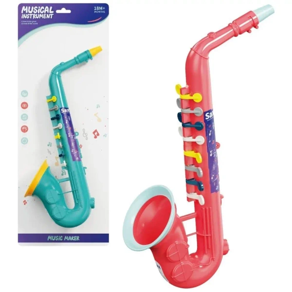 Zabawkowy Saksofon dla Dzieci - Mały Muzyk Odkrywa Dźwięki! Ten kolorowy i atrakcyjny saksofon to idealna zabawka dla każdego małego artysty, który pragnie odkryć świat muzyki i rozwijać swoje talenty! Przeznaczony dla najmłodszych, pozwoli im naśladować grę na prawdziwym instrumencie i czerpać radość z tworzenia dźwięków. Główne cechy produktu: Realistyczny wygląd (zabawkowy): Saksofon wiernie odwzorowuje kształt prawdziwego instrumentu, z charakterystycznym zakrzywionym korpusem i klapami. Dostępny w żywych kolorach (np. różowy z jasnoniebieskimi i żółtymi detalami, turkusowy z fioletowymi i żółtymi detalami), co czyni go bardzo atrakcyjnym dla dzieci. Łatwy w obsłudze: Zaprojektowany z myślą o małych rączkach, posiada proste klawisze, które po naciśnięciu wydają dźwięki (saksofon jest zabawką i nie wydaje profesjonalnych dźwięków jak prawdziwy instrument, ale symuluje je, np. poprzez piszczałki lub elektroniczne moduły dźwiękowe - należy doprecyzować, jeśli informacje są dostępne). Wspiera rozwój muzyczny: Zabawka stymuluje zainteresowanie muzyką, rozwija słuch, poczucie rytmu i koordynację ręka-oko. Zachęca do eksperymentowania z dźwiękami i improwizacji. Rozwija kreatywność i wyobraźnię: Dziecko może wcielić się w rolę muzyka, tworzyć własne "koncerty" i odgrywać role, co pobudza jego fantazję. Lekka i bezpieczna konstrukcja: Wykonany z trwałego i bezpiecznego dla dzieci tworzywa sztucznego, idealnego dla małych rączek. Idealny na prezent: Estetyczne opakowanie na blistrze sprawia, że instrument jest doskonałym pomysłem na upominek dla przyszłego muzyka. Wielkość opakowania: 50x19x8 cm Podaruj swojemu dziecku ten wspaniały saksofon i pozwól mu rozpocząć swoją muzyczną przygodę!