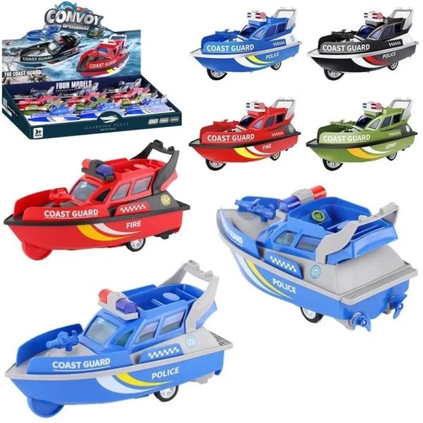 Zestaw Łodzi Ratunkowych/Służb Specjalnych "Convoy" - Wodne Przygody w Akcji! Opis produktu: Wyrusz na ekscytujące misje ratunkowe i patrolowe z naszym fantastycznym zestawem łodzi służb specjalnych "Convoy"! Te realistycznie wyglądające pojazdy wodne, inspirowane jednostkami Coast Guard, Policji, Straży Pożarnej i Wojska, zapewnią Twojemu dziecku godziny kreatywnej i pełnej wyobraźni zabawy. Idealne do zabawy na sucho! Dlaczego nasz zestaw łodzi to doskonały wybór dla małych bohaterów? Cztery Modele Służb Specjalnych: Zestaw zawiera różnokolorowe łodzie reprezentujące różne służby: o Coast Guard (Straż Przybrzeżna) / Police (Policja): Klasyczna niebiesko-biała łódź z napisem "POLICE" i syreną. o Coast Guard / Fire (Straż Pożarna): Dynamiczna czerwona łódź z napisem "FIRE". o Coast Guard / Army (Wojsko): Wytrzymała zielona łódź z napisem "ARMY". o Coast Guard (Straż Przybrzeżna) / Czarna: Elegancka czarna łódź z napisem "POLICE" (widoczna na górze zdjęcia, różni się kolorem od niebieskiej). Realistyczne Detale: Każda łódź posiada szereg detali, takich jak światła ostrzegawcze, anteny, a także śruba napędowa (wizualnie), co pobudza wyobraźnię i czyni zabawę bardziej realistyczną. Zabawa na Sucho: Łodzie są wykonane z tworzywa sztucznego, posiadają kółka, co pozwala na dynamiczną zabawę również na płaskich powierzchniach. Rozwój Wyobraźni i Kreatywności: Dzieci mogą wymyślać niezliczone scenariusze akcji ratunkowych, pościgów czy patroli, rozwijając swoją kreatywność i umiejętności społeczne. Wysoka Jakość i Bezpieczeństwo: Zabawki wykonane są z trwałego i bezpiecznego dla dzieci tworzywa sztucznego. Przeznaczone dla dzieci w wieku 3 lata i starszych Idealny Prezent: Doskonały pomysł na prezent urodzinowy, świąteczny lub z innej okazji dla każdego małego fana pojazdów służb specjalnych i wodnych przygód. Specyfikacja: Typ: Łodzie służb specjalnych / ratunkowych Dostępne kolory : niebieski, czerwony, czarny, moro Materiał: Wysokiej jakości tworzywo sztuczne Wiek: 3+ Wymiary pojedynczej łodzi: 14x7x6 Opakowanie: Kartonowe pudełko zbiorcze (jak na zdjęciu), idealne do ekspozycji. Daj swojemu dziecku możliwość wcielenia się w rolę prawdziwego bohatera z naszym zestawem łodzi "Convoy"! Gotowi na akcję?