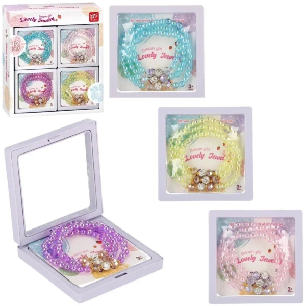 Bransoletka "Lovely Jewelry" z Koralikami - Kasetki z Biżuterią dla Dziewczynek! Przedstawiamy czarujące bransoletki "Lovely Jewelry", które z pewnością zachwycą każdą małą elegantkę! To idealny prezent dla dziewczynek uwielbiających modę i biżuterię. Główne cechy produktu: Efektowne koraliki i ozdoby: Bransoletki wykonane są z drobnych, lśniących koralików, a każda z nich ozdobiona jest centralnym elementem - dużą, błyszczącą ozdobą imitującą kamienie szlachetne, otoczoną mniejszymi "kryształkami". To dodaje im elegancji i blasku. Eleganckie kasetki do przechowywania: Każda bransoletka jest indywidualnie zapakowana w przezroczystą, otwierana kasetkę. Kasetki są idealne do bezpiecznego przechowywania biżuterii, a także ułatwiają prezentację i stanowią gotowe opakowanie na upominek. Wewnątrz kasetki znajduje się kolorowe tło z napisem "Dream girl Lovely Jewelry". Rozwija zmysł estetyki i kreatywności: Dzieci mogą eksperymentować z różnymi stylami, łącząc bransoletki z ulubionymi ubrankami, co sprzyja rozwojowi ich własnego poczucia estetyki. Bezpieczne dla dzieci: Produkt wykonany jest z materiałów bezpiecznych dla najmłodszych użytkowników. Zalecany wiek: 3+ (zgodnie z oznaczeniem na opakowaniu). Wielkość opakowania 9x9x1 cm Podaruj swojemu dziecku ten wyjątkowy zestaw bransoletek "Lovely Jewelry" i pozwól mu błyszczeć!