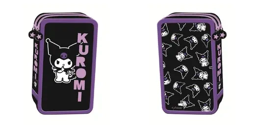 Piórnik szkolny podwójny z wyposażeniem Kuromi black