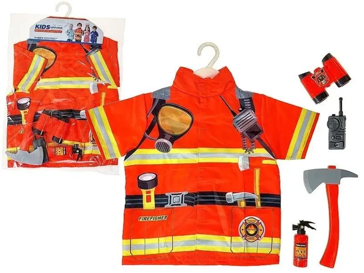 strój strażaka z akcesoriami; 57x42x4cm, PVC