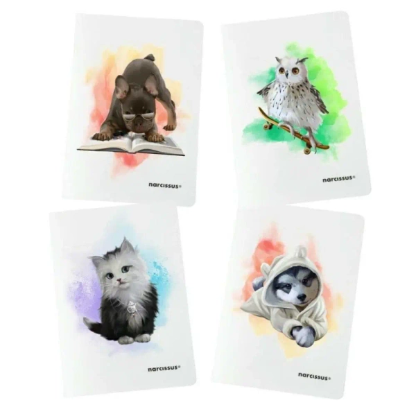 NARCISSUS zeszyt JOY w okładce z polipropylenu. JOY to seria zeszytów szkolnych z okładkami przedstawiającymi słodkie zwierzaki.