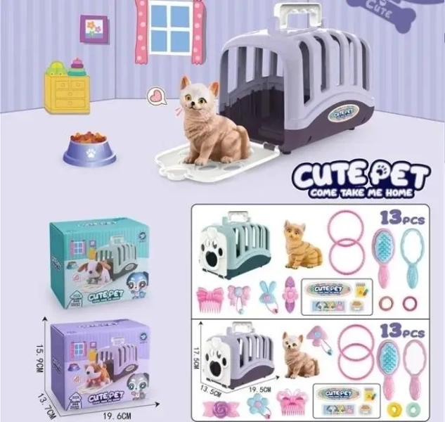 Odkryj świat opieki nad zwierzakami z zestawem "CUTE PET - COME TAKE ME HOME"! Ten uroczy zestaw zawiera wszystko, czego potrzebuje mały opiekun, by dbać o swojego pupila. Centralnym elementem jest realistycznie wyglądający kotek, który może podróżować w stylowym transporterze. Transporter, dostępny w delikatnym błękicie lub uroczym fiolecie, jest nie tylko praktycznym, ale i estetycznym elementem zestawu. W komplecie znajdziesz również szeroki wybór akcesoriów, takich jak miseczka na jedzenie, szczotka do pielęgnacji, lusterko, a także różnorodne spinki i gumki do stylizacji futerka kotka. Zestaw składa się z 13 elementów, zapewniając bogactwo możliwości zabawy. Jest to doskonała propozycja dla dzieci, które uwielbiają bawić się w odgrywanie ról i marzą o własnym pupilu. Rozwija wyobraźnię, empatię i uczy odpowiedzialności. Wymiary opakowania to około 19,6 cm długości, 13,7 cm szerokości i 15,9 cm wysokości, co sprawia, że jest to również świetny pomysł na prezent.