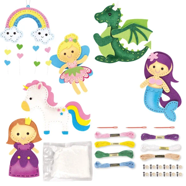 Materiały do uszycia bajkowych postaci, które mogę być ozdobą plecaka.