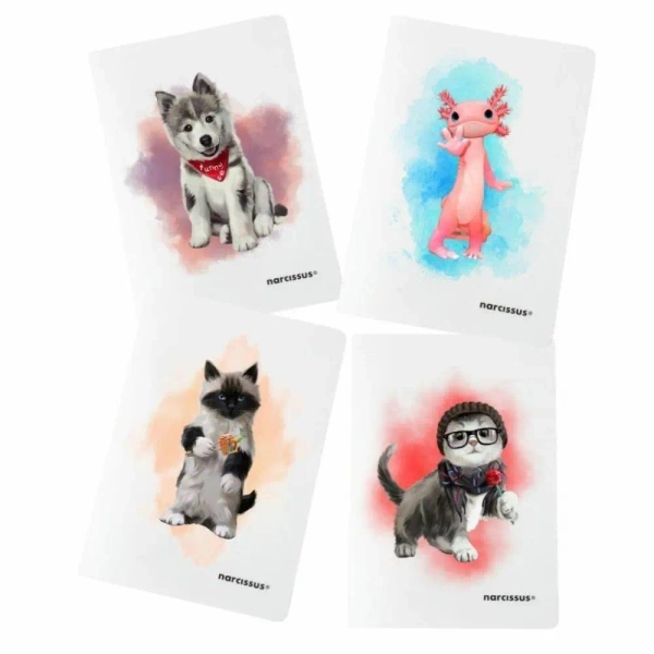 NARCISSUS zeszyt JOY w okładce z polipropylenu. JOY to seria zeszytów szkolnych z okładkami przedstawiającymi słodkie zwierzaki.