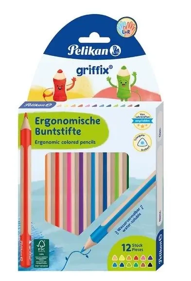 Kredki ołówkowe trójkątne Griffix 12 kolorów - PELIKAN