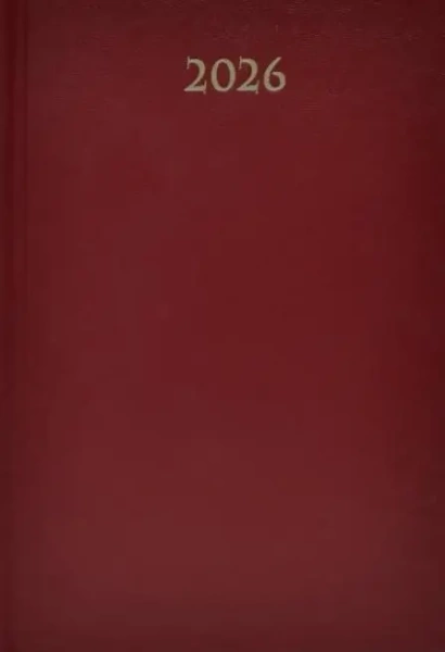 blok: 140x205 mm, 320 stron, papier biały 60g/m2, druk 2 kolory, tasiemka, blok kalendarza szyty nićmi OKŁADKA: skóropodobna, tektura, bez gąbki, ze złoceniem roku