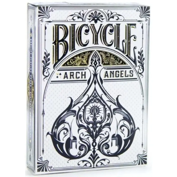Te eleganckie karty do gry oferują standardowe indeksy rozmieszczone na przeciwnych narożnikach każdej karty. Zestaw składa się z 52 kart i 2 jokerów, które są powleczone plastikiem i wykończone technologią Air Cushion Finish dla gładkiego przesuwania i łatwego tasowania. Rozmiar tych kart to format pokerowy (63 x 89 mm). Wyprodukowane zostały w USA przez renomowaną firmę United States Playing Card Co. Ich autentyzmu podkreśla sygnatura Bicycle®. Bicycle® Archangels to talia kart, której design czerpie inspiracje z mistycyzmu i wyrafinowanym eleganckim stylem.Cechy szczególne Kart Archangels