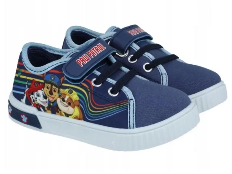 Stylowe trampki dziecięce z uwielbianymi bohaterami Psi Patrol to doskonały wybór dla każdego małego fana przygód Marshalla, Chase'a i reszty ekipy! Świetnie sprawdzą się na co dzień - do przedszkola, szkoły czy na spacer. Buty utrzymane są w granatowej kolorystyce z jasnoniebieskimi akcentami, dzięki czemu prezentują się nowocześnie i efektownie. Po zewnętrznej stronie cholewki znajduje się nadruk postaci z bajki Psi Patrol, co nadaje obuwiu wyjątkowy charakter licencyjny. Biała podeszwa została wyposażona w wbudowane świecące diody LED, które migają podczas chodzenia, przyciągając uwagę i sprawiając dziecku jeszcze więcej radości. Dodatkowo z tyłu podeszwy znajduje się ozdobny gumowy pasek z motywem psich łapek w kolorze granatowym. Trampki zapinane są na praktyczny rzep, który umożliwia szybkie i samodzielne zakładanie oraz zdejmowanie obuwia. Dodatkowo zastosowano elastyczną gumkę w kolorze granatowym, która imituje sznurówki i automatycznie dopasowuje się do stopy, zapewniając lepszą stabilizację i komfort noszenia. Obuwie zostało wykonane z lekkich i wygodnych materiałów, dzięki czemu idealnie sprawdzi się w codziennym użytkowaniu - bez zmęczenia i dyskomfortu Długość wkładki: 18 cm