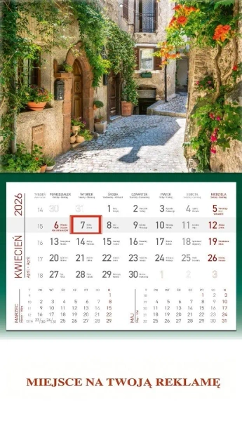 Możliwość wykonania nadruku reklamowego na dole kalendarza.