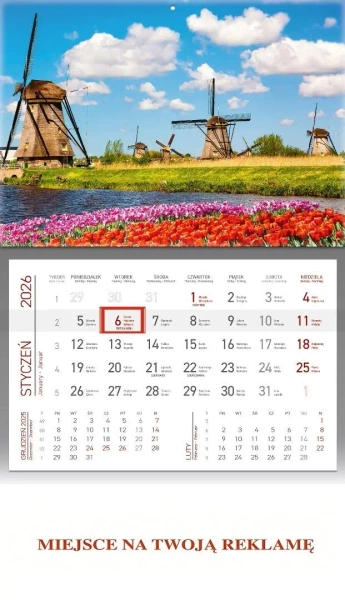 Kalendarz 2026 ścienny jednodzielny Wiatraki - Wokół Nas