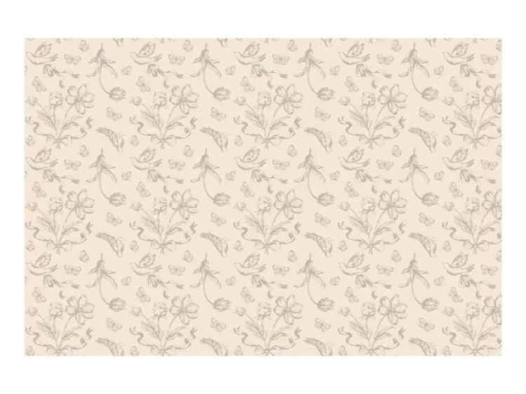 Jednorazowy, jednostronny, prostokatny obrus o wymiarach 180 x 120 cm w kolorze beżowym z ciemnobeżowymi kwiatami. Obrus wykonany z materiału syntetycznego.