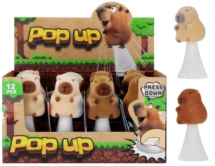 Zalety produktu Zabawka skacząca Kapibara 10 cm mix kolorów od MEGA CREATIVE. Zabawna Kapibara, która... skacze Ta sprytna, sprężysta zabawka o wysokości 10 cm to mnóstwo radości w małym wydaniu. Wystarczy nacisnąć i puścić, a kapibara podskoczy do góry, zaskakując każdego swoim energicznym ruchem Zabawka rozwija motorykę małą i koordynację ruchową, dostarcza dużo śmiechu i pozytywnych emocji, doskonała do wspólnej zabawy dziecko-rodzic. Wykonana z bezpiecznego materiału -bezpieczna dla dziecka Idealna do zabawy w domu, przedszkolu lub w podróży, sympatyczny wygląd przyciąga uwagę dzieci i dorosłych. Występuje w dwóch kolorach, pakowana w display po 12szt. Wymiary/waga wymiary produktu cm 10 cm, waga produktu kg. 0,02kg. Wymiary opakowania display szer.. x wys. x gł. cm 19x10x14, waga opakowania display kg. 0,34kg. Zabawka przeznaczona dla dzieci w wieku 3 . Pakowana display A 12. Karton 288szt.