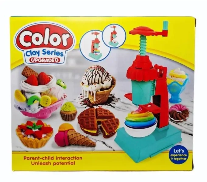 Zestaw do zabawy masą plastyczną z prasą i akcesoriami do tworzenia deserów. Zapakowany w kartonowe pudełko. Zabawka przeznaczona dla dzieci od lat 3. Podane wymiary są wymiarami opakowania.