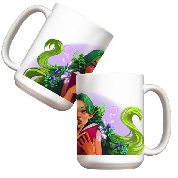 Eteryczna fae o długich, lśniących włosach i magicznym spojrzeniu siedzi pośród kwiatów, zanurzona w lekturze starodawnej księgi. Teraz może być z Toba cały czas, dzięki naszemu kubkowi! Pojemność: 440ml Wysokość: 120 mm Średnica: 85 mm Materiał: ceramika