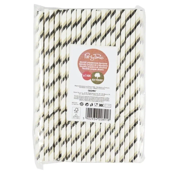 Słomki papierowe łamane czarne 144szt - Arpex