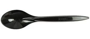 Łyżki wielorazowe wykonane z tworzywa w kolorze czarnym. Wytrzymałe a zarazem lekkie i wygodne sztućce wielokrotnego użytku. Można myć je w zmywarce nawet 125 razy. Nieodzowny element na stole podczas letniego grilla, garden party lub podczas pikniku. Idealnie sprawdzą się na przyjęciach urodzinowych oraz imprezach na świeżym powietrzu. Wymiar produktu: 18 cm.