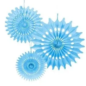 Papierowe rozety dekoracyjne, 3 sztuki w opakowaniu .Rozmiary: 1 x 14 cm, 1 x 20 cm, 1 x 30 cm .Kolor niebieski.rodukt posiada certyfikat FSC, co oznacza że surowiec zastosowany do jego wytworzenia pochodzi z materiałów pozyskanych legalnie, odpowiedzialnie i bez uszczerbku dla środowiska oraz lokalnych społecznośc