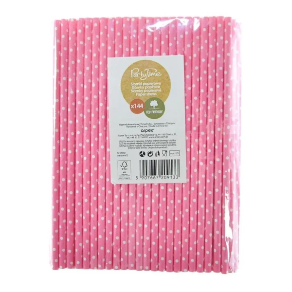 Słomki papierowe różowe w białe kropki 144szt - Arpex