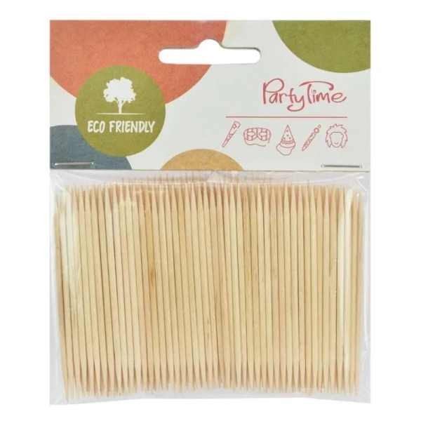 Wykałaczki z drewna brzozowego, dwustronnie ostrzone. 100% zastosowanego surowca pochodzi z lasów posiadających certyfikat FSC(R), co oznacza że wykałaczki zostały stworzone z materiałów pozyskanych legalnie, odpowiedzialnie i bez uszczerbku dla środowiska oraz lokalnych społeczności