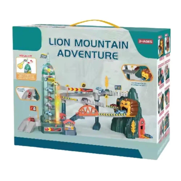 Tor Samochodowy Zjeżdżalnia Most Winda Efekty Świetlne Dźwiękowe Zestaw Lew