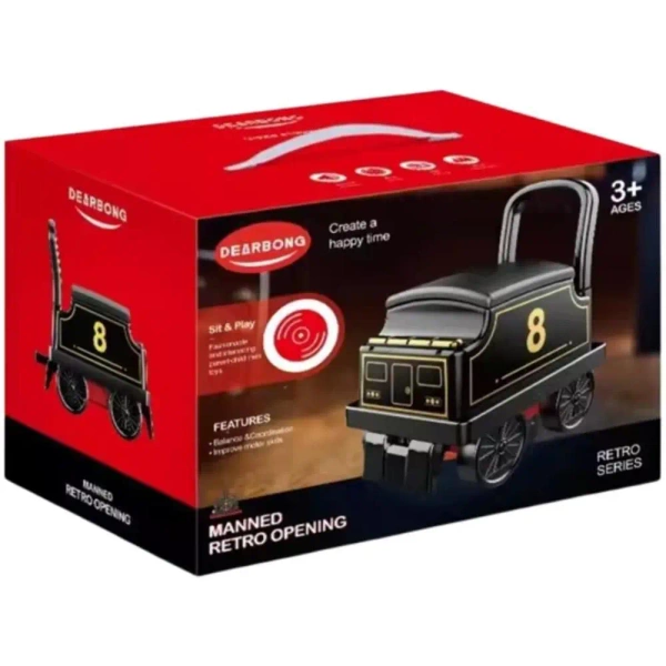 Wielofunkcyjny wagonik: Wagonik lokomotywy retro pełni kilka różnych funkcji, umożliwiając dziecku różnorodną zabawę. Może być wykorzystywany jako pchacz, chodzik oraz jeździk, co sprawia, że rośnie z potrzebami i umiejętnościami rozwijającego się dziecka.