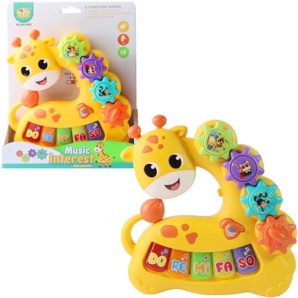 Żyrafa z Organami "Music Interest" - Interaktywna Zabawka Muzyczna dla Maluchów! Przedstawiamy uroczą i interaktywną Żyrafę z Organami z serii "Music Interest" - idealną zabawkę, która wprowadzi Twoje dziecko w fascynujący świat dźwięków i melodii! Ta kolorowa żyrafa nie tylko zachwyca wyglądem, ale także oferuje wiele funkcji rozwijających zmysły i zdolności muzyczne najmłodszych. Cechy produktu: Trzy Tryby Funkcji (3 Function Modes): Zabawka oferuje różnorodne tryby zabawy, które stymulują dziecko do odkrywania: o "Sound effect of musical instrument": Uczy rozpoznawania dźwięków instrumentów. o "Sing a nursery rhyme, 5 music pieces": Odtwarza pięć wesołych melodii i rymowanek, zachęcając do śpiewania i zabawy. o "Change voice game": Umożliwia zmianę głosu, dodając element niespodzianki i humoru. Kolorowe Klawisze Organów (Do Re Mi Fa So): Pięć klawiszy oznaczonych nutami "Do, Re, Mi, Fa, So" pozwala dziecku na naukę podstaw gamy i tworzenie własnych melodii. Klawisze są duże i łatwe do naciśnięcia przez małe rączki. Obrotowe Koła Zębate ze Zwierzątkami: Na szyi żyrafy znajdują się kolorowe, obrotowe koła zębate z wizerunkami zwierzątek. Kręcenie nimi rozwija zdolności manualne i uczy zależności przyczynowo-skutkowych. Uroczy Design Żyrafy: Zabawka w kształcie uśmiechniętej, żółtej żyrafy z plamkami i ruchomymi elementami przyciąga wzrok i zachęca do interakcji. Rozwój przez Zabawę: Wspiera rozwój słuchu muzycznego, poczucia rytmu, koordynacji wzrokowo-ruchowej, kreatywności oraz zdolności motorycznych. Idealny Prezent: To fantastyczny upominek na urodziny, święta lub inną okazję dla każdego malucha, który uwielbia muzykę i interaktywne zabawki. Wiek: 12+ Wielkość opakowania: 19x23x6 cm Pozwól swojemu dziecku rozwijać muzyczne zainteresowania i bawić się z naszą uroczą Żyrafą z Organami "Music Interest"!
