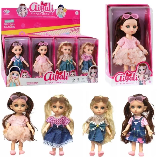 Urocze Lalki "Aiyali" Fashion Girl's Doll Classic - Stwórz Własne Historie Mody! Przedstawiamy zestaw uroczych lalek "Aiyali" z serii "Fashion Girl's Doll Classic", które zachwycą każdą małą stylistkę! Te śliczne lalki to idealne towarzyszki do kreatywnej zabawy, rozwijania wyobraźni i tworzenia własnych, modowych scenariuszy. Cechy produktu: 4 Różnne wzory Lalek: każda z innym kolorem włosów (brązowe i blond) oraz w unikalnym, modnym ubranku (sukienki, kombinezony, bluzki i spódniczki) oraz okularami. Różnorodność lalek zachęca do odgrywania ról i wymyślania wielu historii. Staranne Wykonanie: Lalki wykonane są z dbałością o detale, z ruchomymi kończynami, co pozwala na różnorodne pozycje i dynamikę w zabawie. Ich słodkie buzie i długie włosy zachęcają do czesania i stylizowania. Modne Kreacje: Każda lalka ma stylowe ubranka w pastelowych kolorach i modne okulary, co inspiruje do rozwijania poczucia estetyki i zainteresowania modą. Rozwój przez Zabawę: Lalki wspierają rozwój umiejętności społecznych, kreatywności, empatii oraz wyobraźni, poprzez odgrywanie ról i tworzenie własnych opowieści. Idealny na Prezent: to fantastyczny upominek na urodziny, święta lub inne okazje dla każdej dziewczynki, która uwielbia lalki i modowe zabawy. Wiek: Zalecane dla dzieci od 3 lat (na opakowaniu widnieje symbol 3+). Pozwól swojemu dziecku zanurzyć się w świecie mody i fantazji z lalkami "Aiyali". Te urocze przyjaciółki czekają, aby stać się bohaterkami niezliczonych przygód! Wymiary opakowania: 19x10x6 cm Zamów już dziś i podaruj radość modowej zabawy!