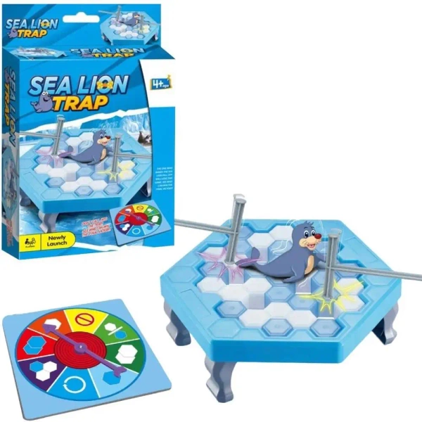 Gra Zręcznościowa "Sea Lion Trap" - Uratuj Lwa Morskiego z Kruchych Lądolodów! Przedstawiamy ekscytującą grę zręcznościową "Sea Lion Trap", która przeniesie Was w mroźne rejony Arktyki! Ta wciągająca zabawa polega na ostrożnym usuwaniu lodowych bloków, starając się nie pozwolić, aby uroczy lew morski wpadł do wody. Idealna dla całej rodziny, rozwija precyzję, strategiczne myślenie i uczy cierpliwości. Cechy produktu: Zasady gry: Gracze po kolei kręcą ruletką, która wskazuje, jaki typ lodowego bloku należy usunąć z planszy. Celem jest ostrożne wybijanie klocków, aby platforma, na której siedzi lew morski, pozostała stabilna. Gracz, który sprawi, że lew morski spadnie, przegrywa! Elementy zestawu: W komplecie znajduje się sześciokątna plansza imitująca lodową taflę, liczne sześciokątne "lodowe" bloki (białe i przezroczyste), urocza figurka lwa morskiego oraz ruletka do losowania ruchów. Dodatkowo, w zestawie są plastikowe młoteczki (niewidoczne na zdjęciu, ale typowe dla tego rodzaju gier), służące do wybijania klocków. Rozwój kluczowych umiejętności: o Precyzja i koordynacja ruchowa: Wymaga dokładnych ruchów, aby nie naruszyć całej konstrukcji. o Logiczne myślenie i strategia: Gracze muszą ocenić, który blok usunąć, aby zminimalizować ryzyko zawalenia. o Cierpliwość i koncentracja: Gra uczy skupienia i przemyślanych działań. o Rozpoznawanie kolorów i kształtów: Ruletka i różnokolorowe pola na niej wspomagają naukę. o Interakcja społeczna: Idealna do zabawy w grupie, uczy zasad fair play i zdrowej rywalizacji. Atrakcyjny design: Plansza w przyjemnym, błękitnym kolorze i sympatyczna figurka lwa morskiego sprawiają, że gra jest wizualnie atrakcyjna dla dzieci. Trwałe materiały: Wykonana z bezpiecznych i wytrzymałych materiałów, gwarantujących długotrwałą zabawę. Wiek: Produkt przeznaczony dla dzieci od 4 roku życia (oznaczenie "4+" widoczne na opakowaniu). Wielkość opakowania: 15x20x5 cm "Sea Lion Trap" to wspaniała propozycja na rodzinne popołudnia, która dostarczy mnóstwo śmiechu, emocji i zdrowej rywalizacji, jednocześnie rozwijając cenne umiejętności! Kto uratuje lwa morskiego, a kto wpadnie w pułapkę? Przekonaj się sam!