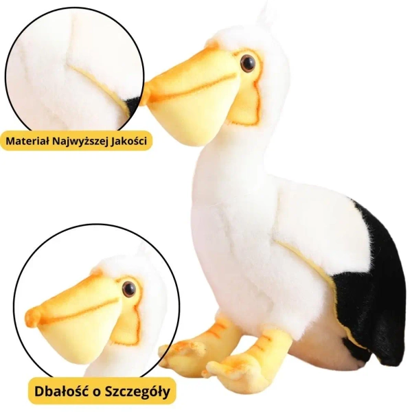 Pluszowy Pelikan - Urocza Maskotka Przytulanka 24 cm Szukasz wyjątkowej przytulanki dla dziecka lub miłośnika zwierząt? Ten pluszowy pelikan to idealny wybór! Mięciutki, kolorowy i starannie wykonany - zachwyci zarówno najmłodszych, jak i dorosłych kolekcjonerów pluszaków. Cechy produktu: Miękki i przyjemny w dotyku - idealny do przytulania i zasypiania Wysokość: ok. 24 cm - idealny rozmiar do rączki dziecka lub na półkę Realistyczne detale - zabawny dziób pelikana, kolorowe piórka i sympatyczny wyraz pyszczka Bezpieczne materiały - wykonany z wysokiej jakości tkanin, bezpiecznych dla dzieci Odpowiedni dla dzieci od 3. roku życia Ten pelikan to nie tylko przytulanka, ale też świetny towarzysz zabaw, pomocnik przy zasypianiu i ozdoba dziecięcego pokoju.