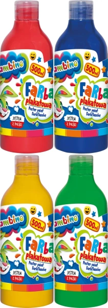 Farby plakatowe Bambino 4 x 500 ml CZERWONA + ŻÓŁTA + NIEBIESKA + ZIELONA