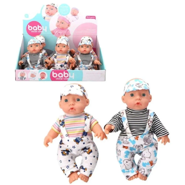 Urocza Lalka Bobas "Baby Little Loves" w Słodkich Ubrankach - Idealna do Przytulania i Zabawy! Opis produktu: Przedstawiamy urocze lalki bobasy z serii "Baby Little Loves", które staną się ulubionymi towarzyszami zabaw każdego dziecka! Te śliczne laleczki, dostępne w różnych, uroczych wzorach ubranka, zachęcają do troszczenia się i rozwijają empatię. Cechy, które pokocha Twoje dziecko: Realistyczny wygląd: Laleczki mają sympatyczne, otwarte buzie i niebieskie oczka, przypominające prawdziwe niemowlęta. Ich rozmiar jest idealny dla małych rączek, co ułatwia przytulanie i noszenie. Miękkie i kolorowe ubranka: Każda lalka ubrana jest w urocze spodenki na szelkach z zabawnymi wzorami (np. pingwinkami, motywami morskimi) oraz koszulkę w paski. Całość uzupełnia dopasowana czapeczka z daszkiem. Rozwój empatii i opiekuńczości: Zabawa z lalkami to doskonały sposób na rozwijanie poczucia odpowiedzialności, empatii i umiejętności opiekuńczych u dzieci. Pozwala na naśladowanie ról dorosłych i odgrywanie scenek z życia codziennego. Trwała konstrukcja: Laleczki są solidnie wykonane, co zapewnia długie godziny radosnej zabawy. Idealny na prezent: Zapakowane w estetyczny kartonik z okienkiem (lub w ekspozytorze, jeśli kupujesz komplet), laleczki są gotowe, by sprawić radość jako prezent na każdą okazję. Dostępne wzory: Lalki dostępne są w różnych wariantach ubranka, widocznych na zdjęciu. Każdy wzór jest pełen uroku i zachęca do kolekcjonowania! Przeznaczenie: Dla małych miłośników lalek. Do zabawy w dom, przedszkole, czy wszędzie tam, gdzie wyobraźnia poprowadzi. Pomaga w nauce opieki i odpowiedzialności. Wymiary lalki: 24 cm Wiek: 3 lata +