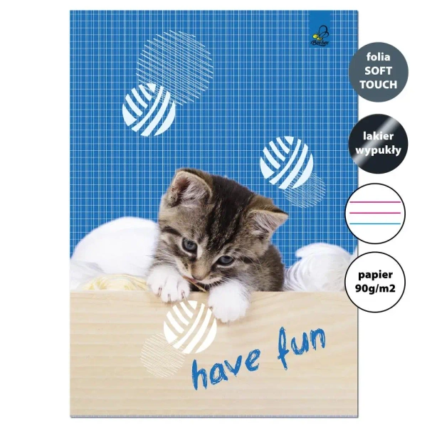 Zeszyt A4 32 kartki w 3 linie kolor 90g Kot i piłki - EV-Corp