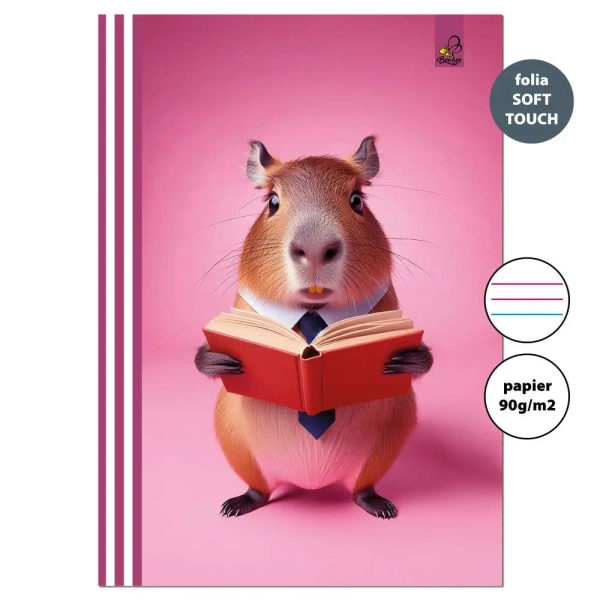 Zeszyt A4 32 kartki w 3 linie kolor 90g Kapibara różowa - EV-Corp
