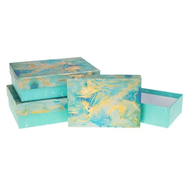 Pudełko prostokątne z kokardą 3szt marmur ROZETTE