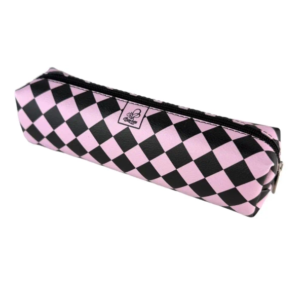 Piórnik szkolny młodzieżowy prostokąt kostka Krata Pink - EV-Corp