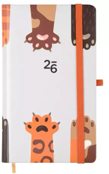 W kalendarzach na 2026 rok znajduje się również wstążka pomocna w szybkiej orientacji w kalendarzu oraz pętelka na długopis.