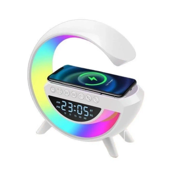 LAMPKA NOCNA WIELOFUNKCYJNA Z BUDZIKIEM I ŁADOWARKĄ INDUKCYJNĄ Nowoczesna lampka nocna G63 to wszechstronne urządzenie, które doskonale sprawdzi się w każdej sypialni, pokoju dziecięcym czy gabinecie. Łączy w sobie funkcje inteligentnego oświetlenia, budzika, maszyny dźwiękowej oraz ładowarki indukcyjnej, zapewniając komfort i funkcjonalność w jednym eleganckim urządzeniu. Dzięki symulacji wschodu słońca, budzenie się jest bardziej naturalne i łagodne, co sprzyja lepszemu samopoczuciu od samego rana. Możliwość płynnej regulacji jasności światła oraz wybór spośród różnorodnych trybów kolorystycznych pozwala dopasować atmosferę do każdej sytuacji - od relaksu przed snem po poranną pobudkę. Urządzenie wyposażone jest w technologię szybkiego ładowania bezprzewodowego, dzięki czemu wystarczy położyć smartfona na górnej powierzchni, by rozpocząć ładowanie - bez kabli i zmartwień. Dodatkowo, wbudowany sound machine z naturalnymi dźwiękami relaksacyjnymi wspiera łatwiejsze zasypianie i pomaga wyciszyć się po intensywnym dniu. Całość dopełnia nowoczesny design o opływowym kształcie i efektownym podświetleniu RGB, który stanowi nie tylko praktyczny, ale i estetyczny element wyposażenia wnętrza. SPECYFIKACJA: Wymiary: 15,55,516 cm Wymiary opakowania: 16, 5 x 16 x 6cm Wersja Bluetooth: 5.2 Głośnik: 3W mocy Bateria: 3.7V / 300mAh Czas ładowania: 2.5 godziny Port ładowania: USB-C Ładowanie bezprzewodowe: 5W / 10W ZAWARTOŚĆ ZESTAWU: Lampka G63 z funkcją budzika Przewód zasilający USB-C Instrukcja obsługi