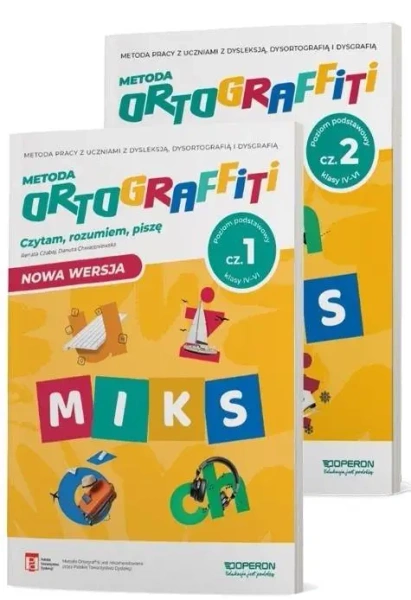 Zeszyty ćwiczeń przeznaczony dla uczniów z dysleksją i dysortografią z klas IV-VI szkoły podstawowej. Mogą z nim pracować zarówno czwartoklasiści, piątoklasiści, jak i szóstoklasiści - wybór zależy od poziomu umiejętności ucznia. W podejściu standardowym najlepiej zacząć od części 1. poziomu podstawowego, by potem przejść do kolejnych części i poziomów. Cała seria składa się z sześciu zeszytów ćwiczeń na różnych poziomach trudności, po dwa zeszyty na rok szkolny. W jednym zeszycie ćwiczeń zgromadzono zróżnicowany materiał ortograficzny - miks trudności ortograficznych, który następnie jest powtarzany w kolejnych zeszytach ćwiczeń, ale na wyższym poziomie. Taki układ jest podyktowany wynikiem badań, które wskazują, że uczniowie z dysleksją lepiej przyswajają coś, co jest przedstawione w krótkich, skoncentrowanych pigułkach, a następnie wielokrotnie powtarzane, niż zebrane w długich jednorazowych sekwencjach (jedna zasada ortograficzna przez dłuższy czas).